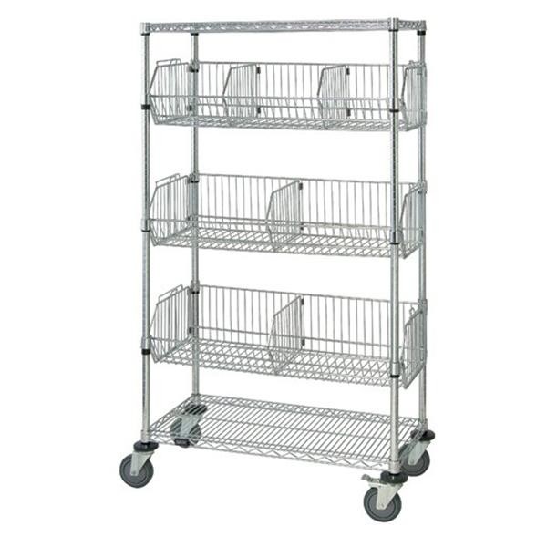 أسطوانات شبكة سلك كروم متنقلة رفوف 4 طبقات لتخزين الإمدادات الطبية
