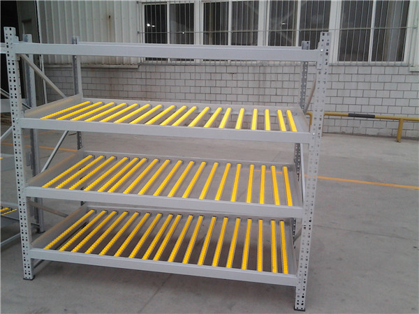 إنه نظام رف يتكون من أعمدة وعوارض وألواح ومكابح. إنه نظام توفير مساحة ومدمج.يتكون أساسا من الرفوف الثقيلة أو الرفوف متوسطة الحجم (تم اختيارها وفقًا لمتطلبات الحمل)يتم تثبيت خط الدوار في كلا الطرفين مع منحدر معين، والتي يمكن أن تدرك أول في، أول من البضائع من قبل وزن البضائع.