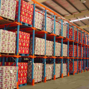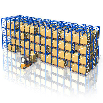 رفوف البليت ذات الدخول هي نظام الوارد أولاً، الصادر أولاً (FIFO). وهي مناسبة لتخزين كميات كبيرة وأنواع صغيرة من البضائع، ومعدل استخدام مساحة المستودعات مرتفع للغاية. لديها ما يقرب من ضعف سعة التخزين في نفس المساحة مقارنة بالأرفف ذات النوع الشعاعي المعتادة، وهي مناسبة بشكل خاص لتخزين وحدات الشحن القياسية. تستخدم على نطاق واسع في غرف التبريد (المأكولات البحرية والشاي والمكسرات والبذور).