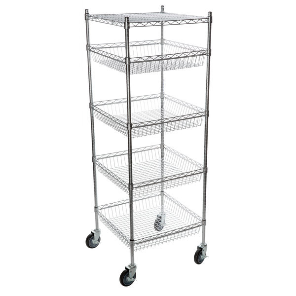 5 طبقات السلال وحدات الرفوف المحمولة السلك المعدني رف البقالة العرض