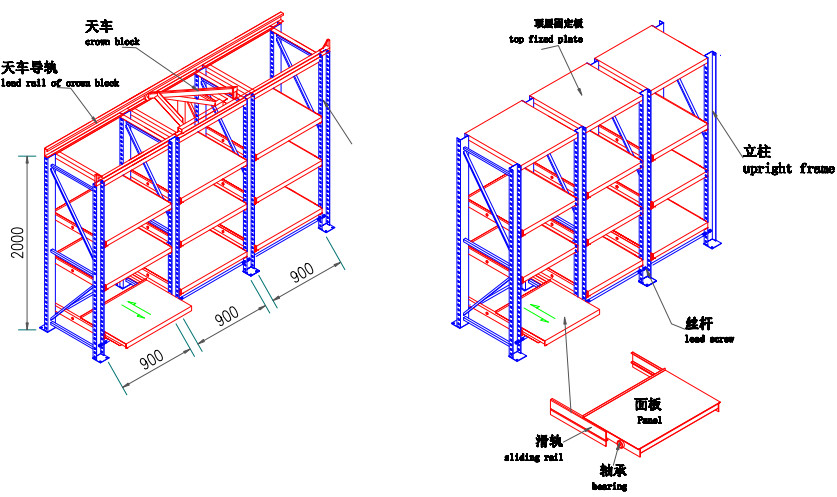 أساسا تخزين أنواع مختلفة من القوالب، وفقا لقدرة التحميل تقسم إلى الدرج نوع القوالب وقائمة القوالب من النوع المفتوح.يمكن تجهيز الجزء العلوي من رف القالب بالرافعة والرفع اليدوي، أجهزة التشكيل من السلاح.