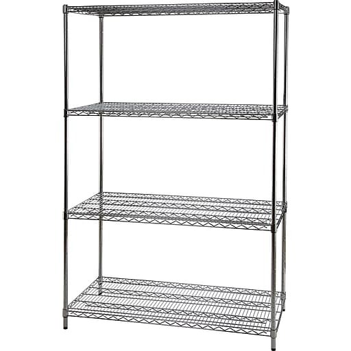 | 1) العنصر | أرفف لوازم مكتبية، أجهزة، كروم، رف سلكي من 4 طبقات، 14 × 36 × 48 بوصة |
