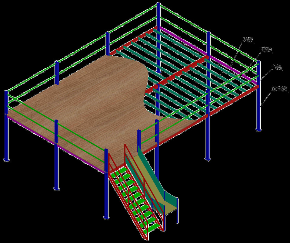 نظام رفوف الأرضية هو بناء رفوف على موقع عمل موجود أو رف لزيادة مساحة التخزين. يمكن استخدامه كرفوف في الطابقين الثاني والثالث.