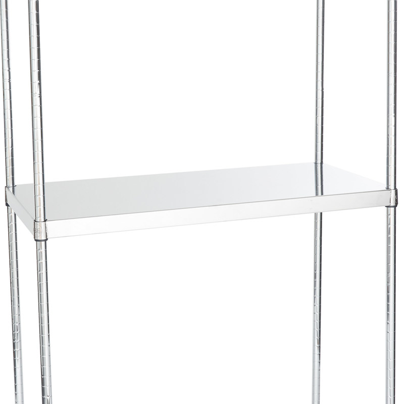 على عكس الرفوف السلكية حيث قد تنزلق المكونات الصغيرة من خلال الشقوق أو تسرب الحزم يمكن أن تلوث المنتجات على الرفوف السفلية،هذا الرف الصلب يسمح لك بتخزين المنتجات بكل ثقة من أي نوع وحجمسواء كنت بحاجة لتخزين المكونات الكبيرة، أدوات التحضير الثقيلة، إمدادات التنظيف، أو حتى المكونات الصناعية الصغيرة، هذا الرف بالتأكيد تفعل الخدعة!