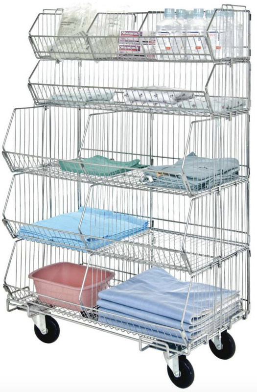 | البند | رف سلة سلكي قابلة للتراكم من الكروم المحمول للمواد الطبية مع 5 صناديق للاستخدام في المستشفى |